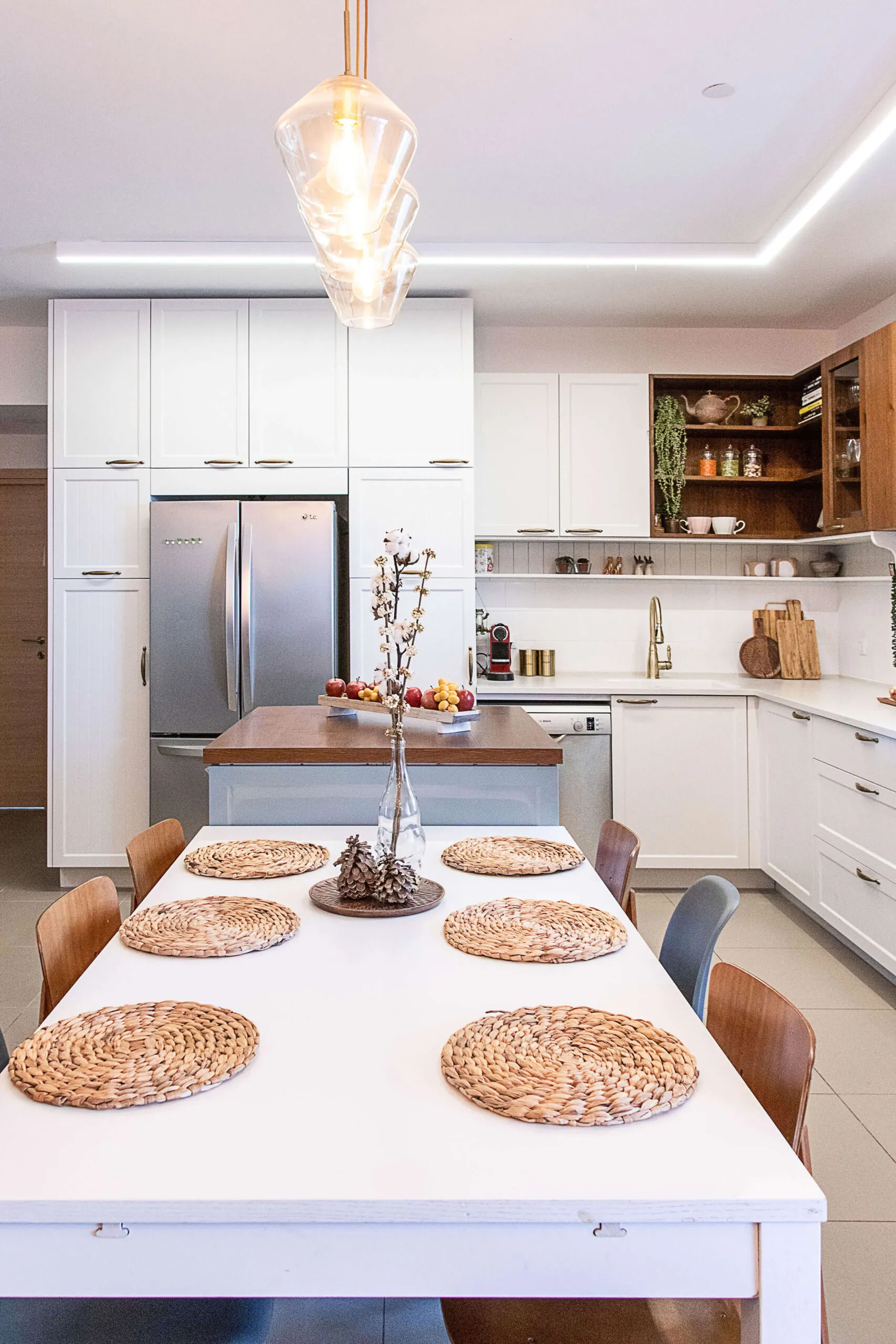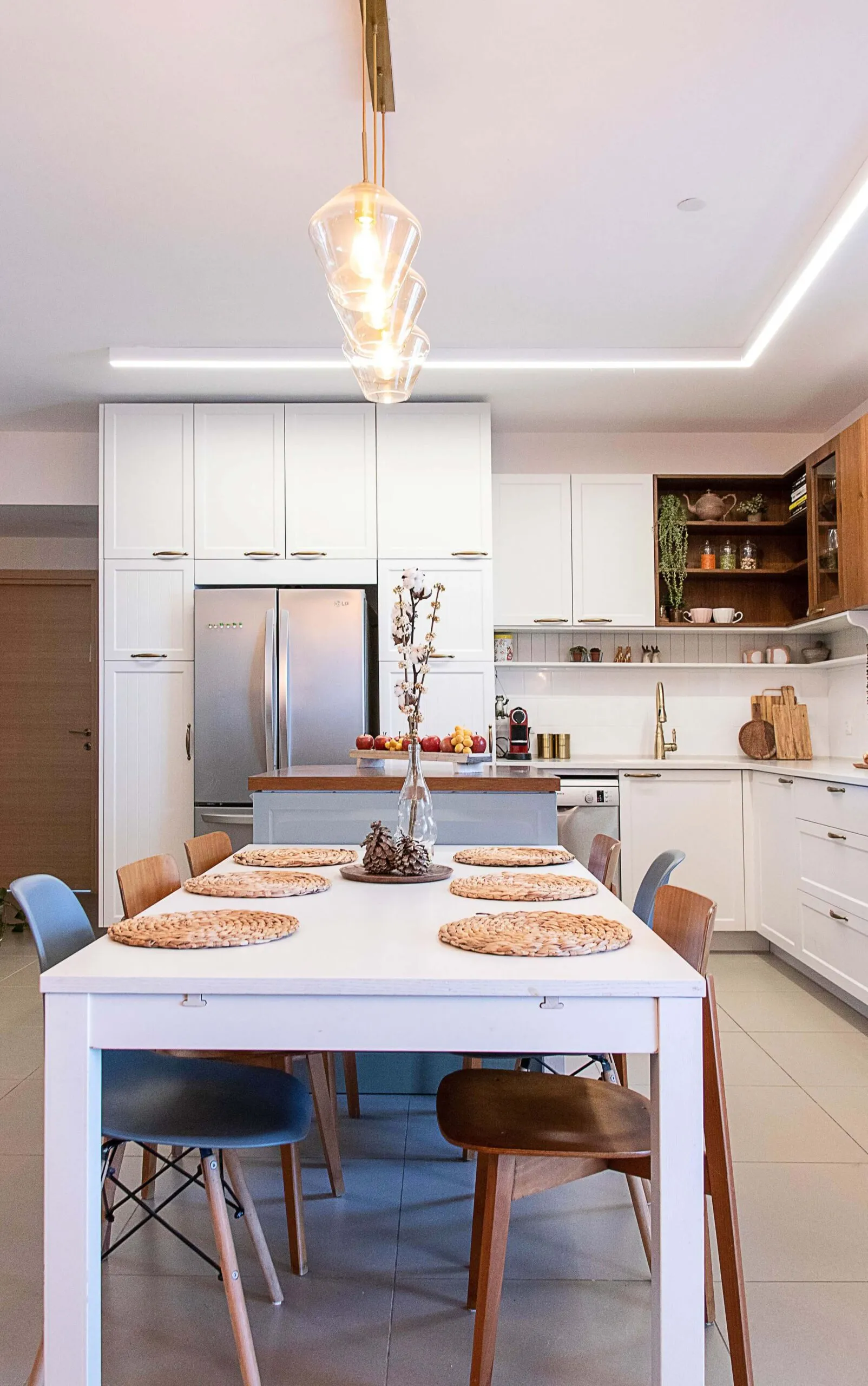 פרויקט עיצוב פנים לדירת קבלן בשטח של כ־110 מ״ר בראש העין, במסגרת שיפוץ חלקי לדירת 5 חדרים. התכנון כלל שינויים פונקציונליים במטבח ובסוויטת ההורים, תוך ביטול חללים לא מנוצלים והתאמה לצרכי המשפחה. העבודה התבססה על מפרט קבלני קיים ושילבה תכנון מחדש, חומרים, צבעים וטקסטורות.